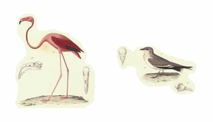 Antiguamente era común asignar flamencos a las aves que caminan. No sólo el aspecto exterior, sino también los detalles anatómicos son idénticos: la estructura de las dunas de flamencos jóvenes, así como la composición de la pelvis y las costillas muestran fuertes paralelismos con las cigüeñas.