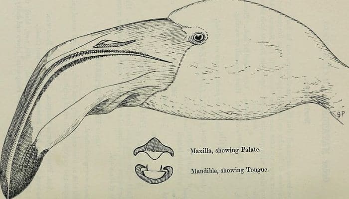 El agua con partículas de comida entra en el interior del pico. Las especies más pequeñas tienen láminas exteriores, que impiden el paso de componentes demasiado grandes. Las láminas interiores, en cambio, son horizontales y no cumplen ninguna función en el momento de la entrada.